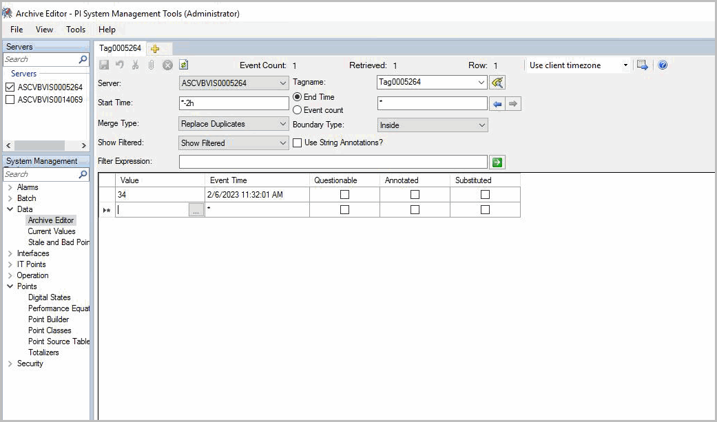 - Insert some value in respective tag in OSI PI server.Archive Editor - PI System Management Tool