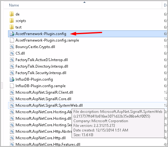 - Go to the<Install folder>\FactoryTalk Analytics InfoPlatform Servicedirectory.Open AssetFramework-Plugin.config File