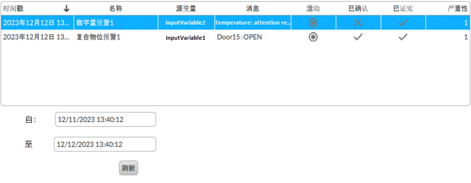 已确认 | :报警未确认 :报警已确认 |