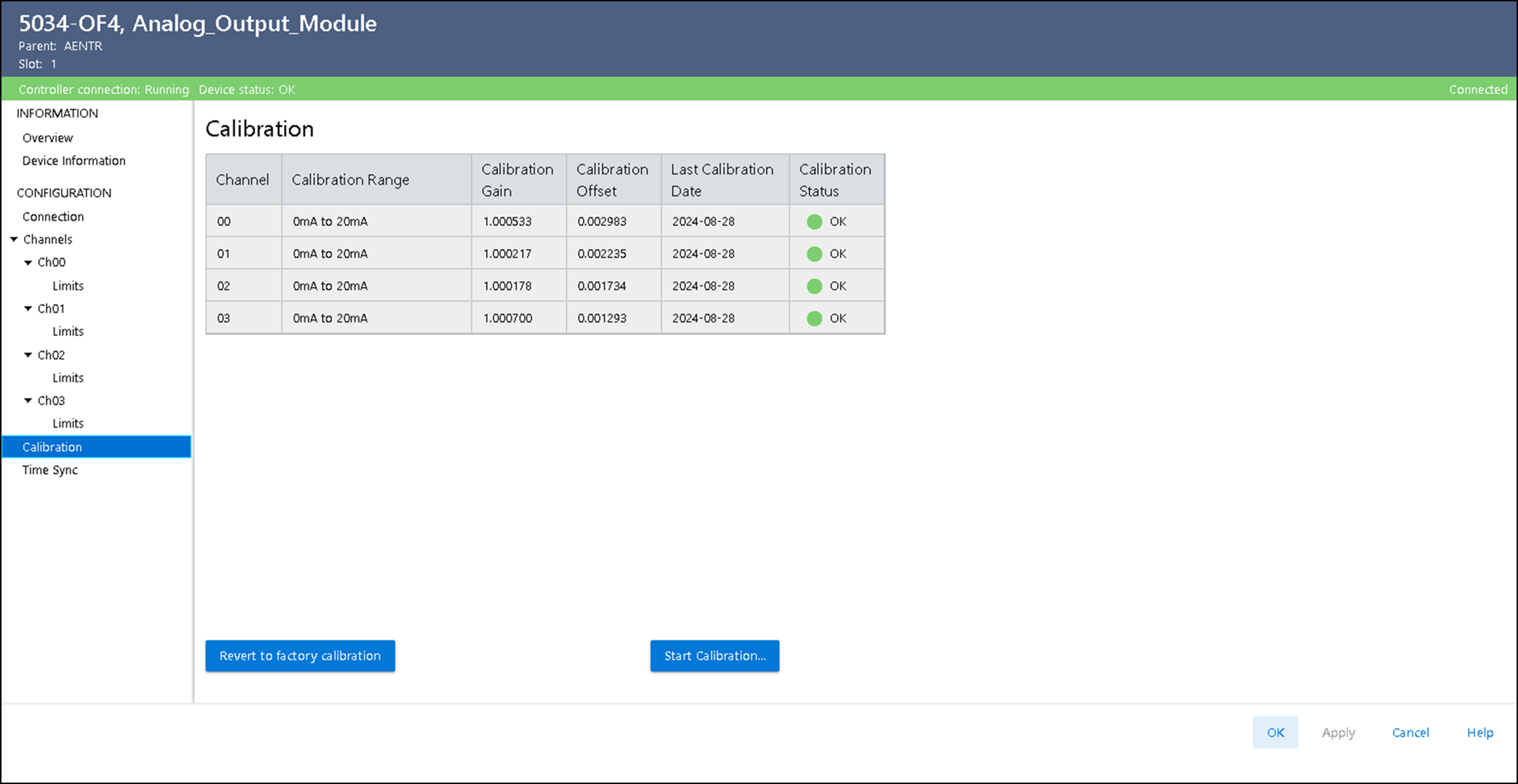 - Wählen Sie im Dialogfeld „Module Properties“ (Moduleigenschaften) in der Ansicht „Calibration“ (Kalibrierung) die Option „Start Calibration“ (Kalibrierung starten).
