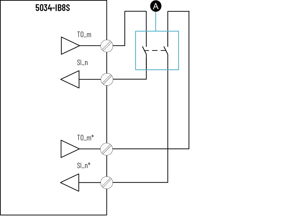 Wenn im Sicherheitsimpulsmodus die externe Verdrahtung zwei SI vom gleichen TO-Punkt kurzschließt, kann der Kurzschluss nicht erkannt werden. Schließen Sie daher im Sicherheitsimpulsmodus zwei SI von unterschiedlichen TO-Punkten an.