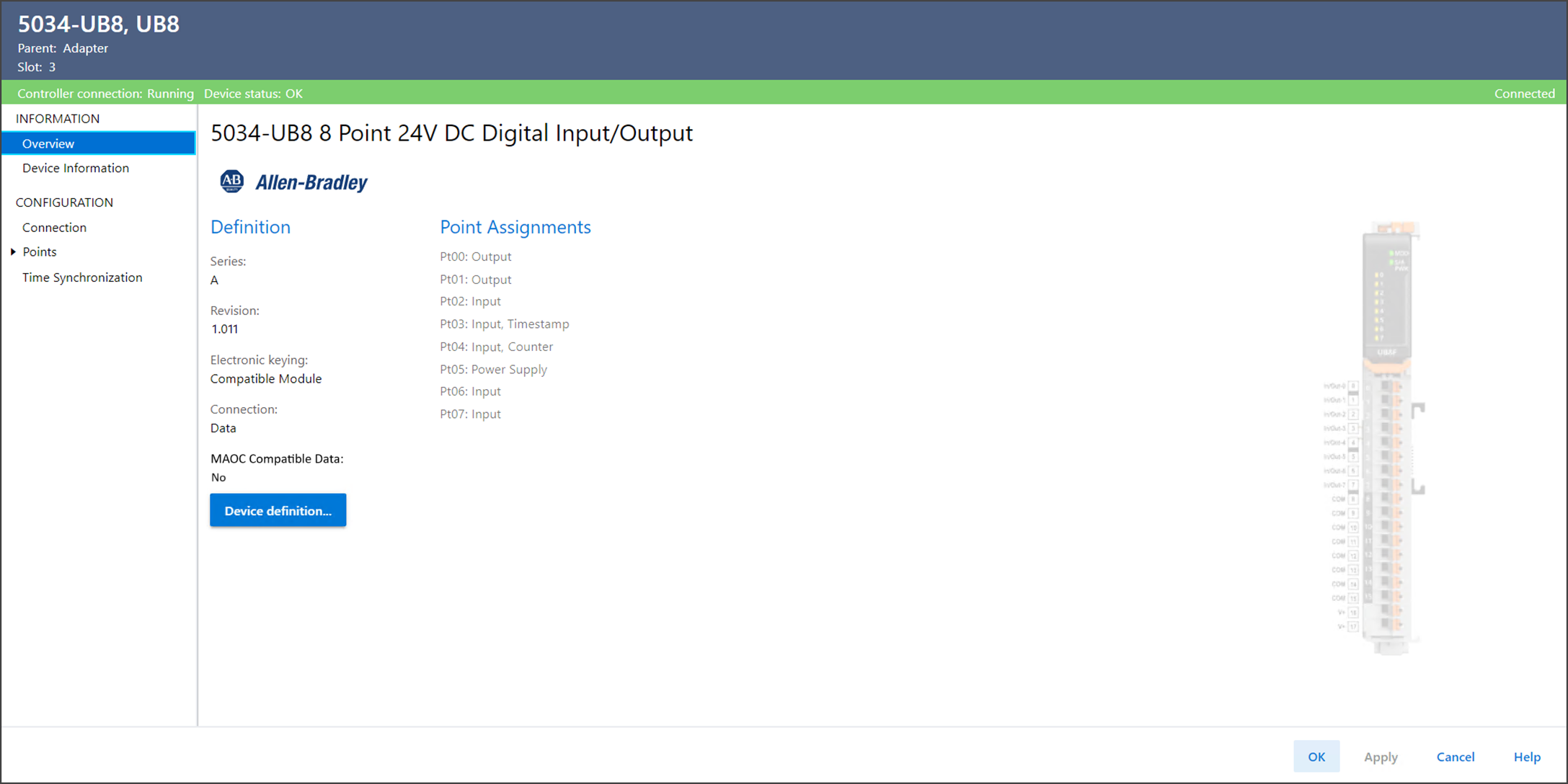 In der Übersicht können Sie die Definition eines Geräts anzeigen, einschließlich Gerätetyp, Version, elektronischer Codierung, Verbindung und anderer gerätespezifischer Werte.