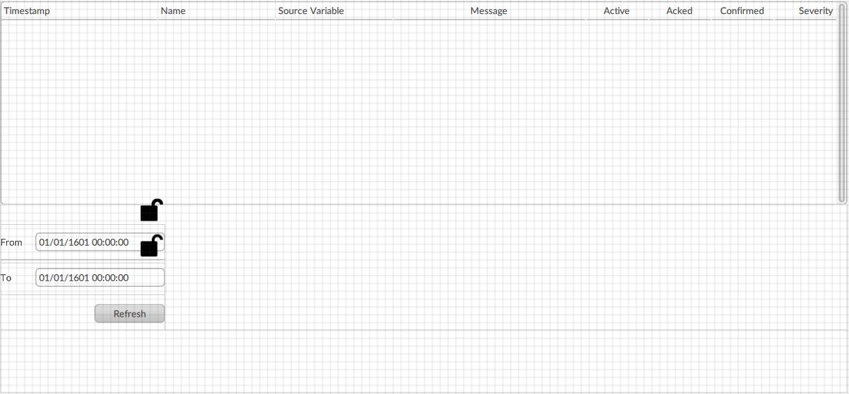 - UnderComponents, dragAlarm History Grid with filterontoPage3 (type)inProject view.