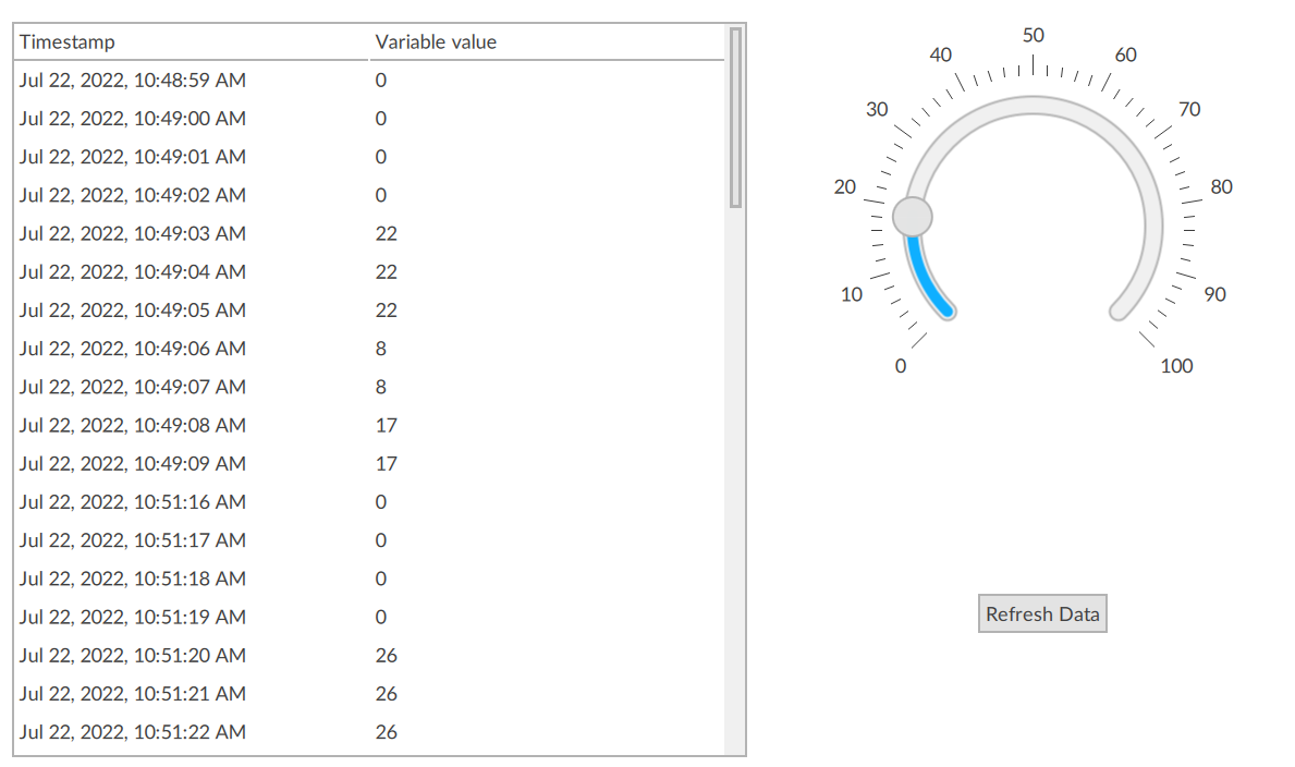 - Create a periodic data logger with an embedded database that monitors the variable. See Add a data logger.