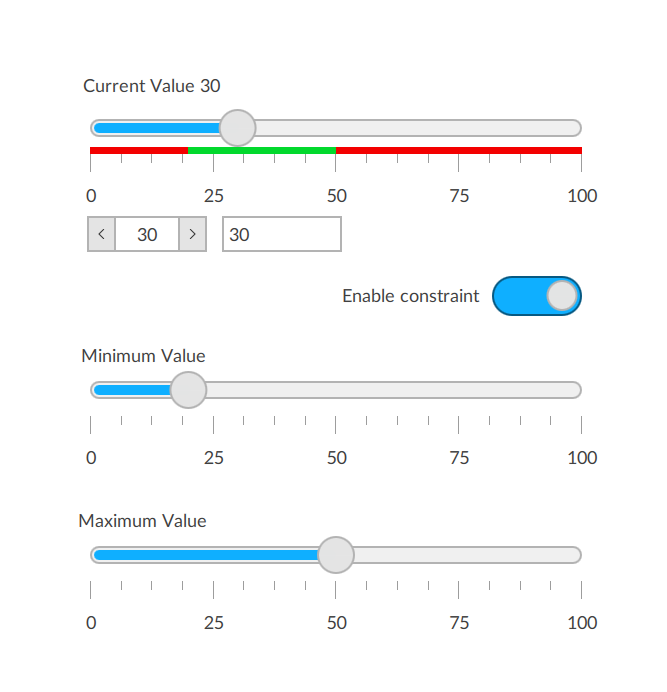 Develop an interface that enables you to change the current value, max value, and minimum value of a variable.