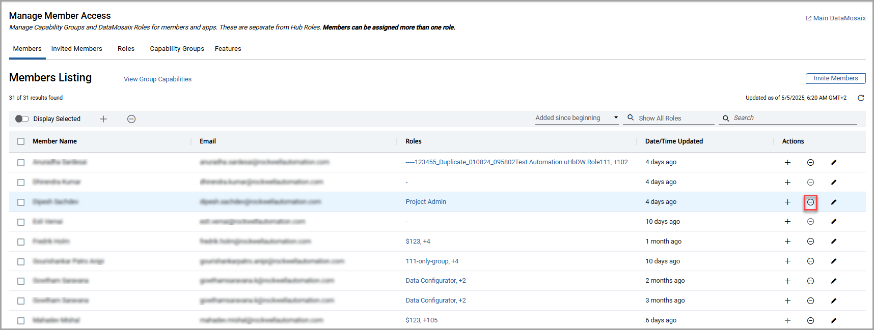 Member ListingNOTE:If any or all roles are assigned to the member, the [] icon is enabled. If no roles are assigned to the member, the [