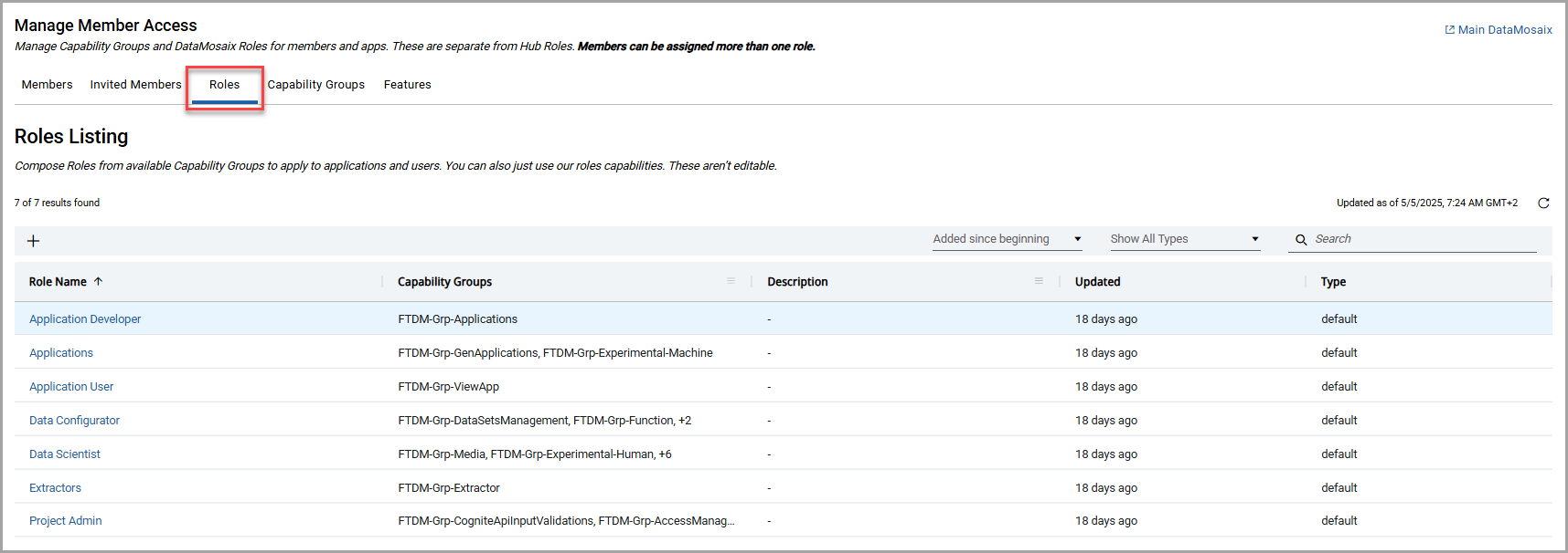 Roles Listing