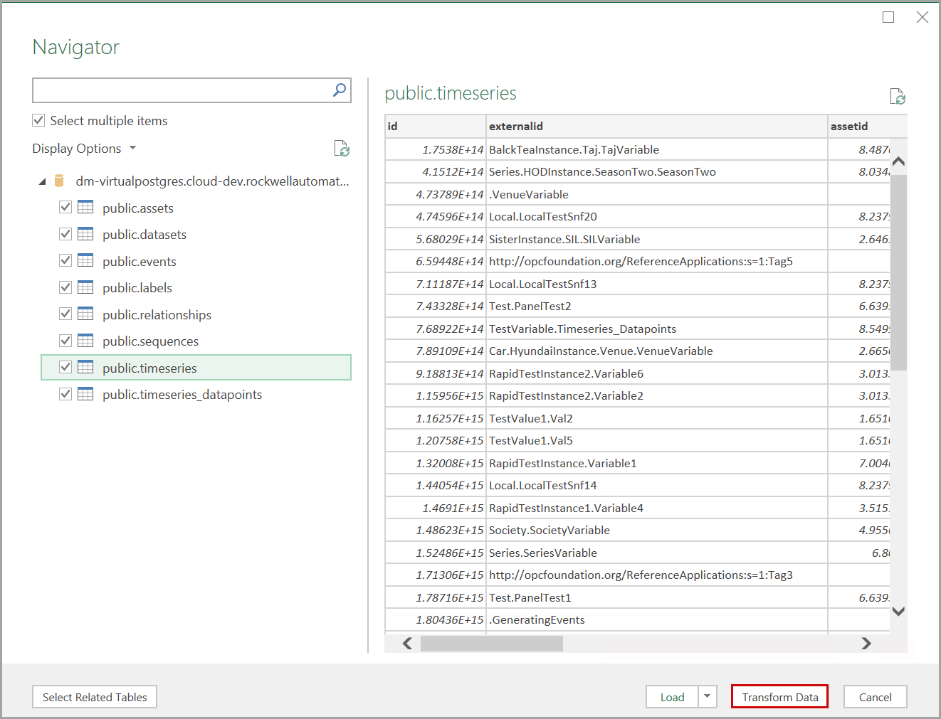- Server:dm-virtualpostgres.cloud.rockwellautomation.com(Production URL).
