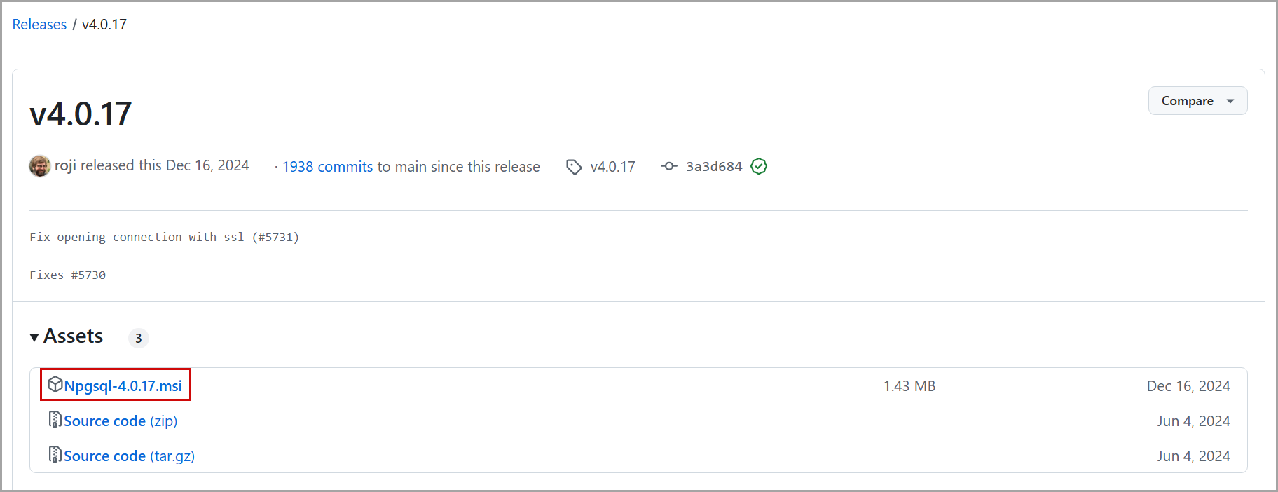 - UnderAssets, clickNpgsql-4.0.17.msi.Click MSI FileTheNpgsql-4.0.17.msifile will be downloaded in the Downloads folder of your local machine.
