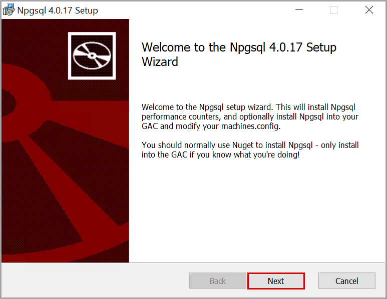 - ClickNext.Npgsql 4.0.17 Setup Dialog