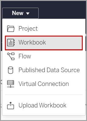 - To create a new workbook, navigate toNew>Workbook.Create New Workbook