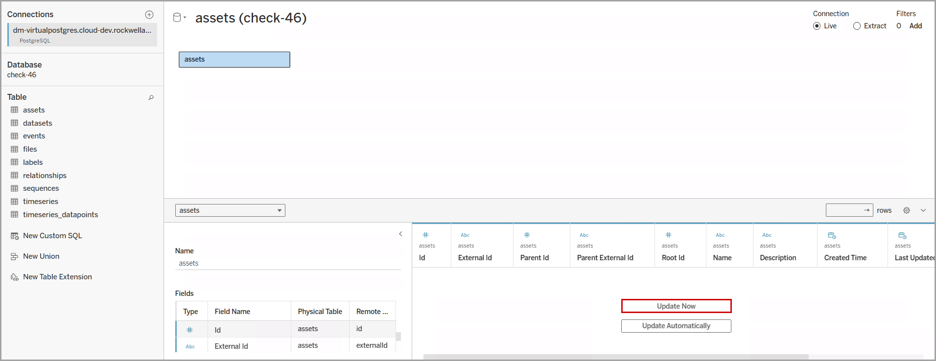 - Drag and drop a table to open campus and clickUpdate Nowto get the table data.View Table Data