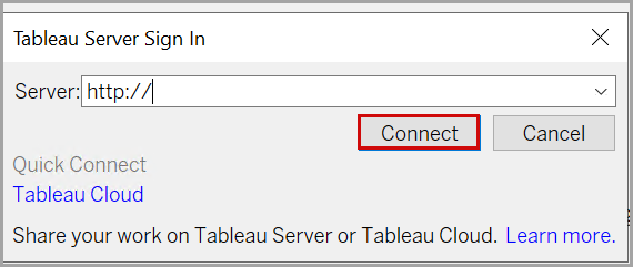 - ClickActivate by signing in to a server.Activate TableauTheTableau Server Sign Indialog box is displayed.