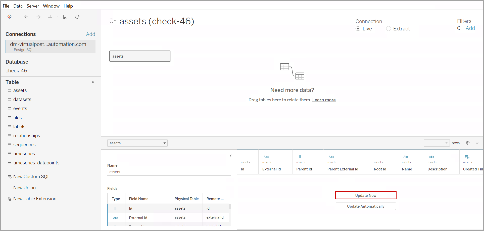 - Drag and drop a table to open campus and clickUpdate Nowto get the table data.Update Table Data