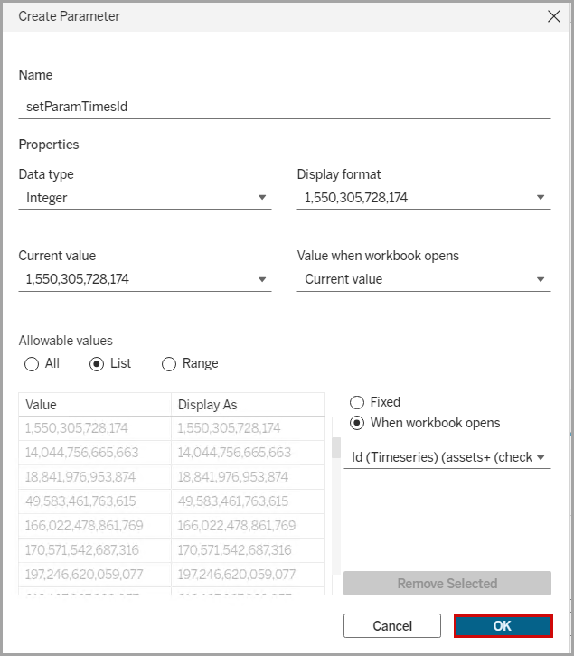 - SelectId(Timeseries)from the drop-down list.