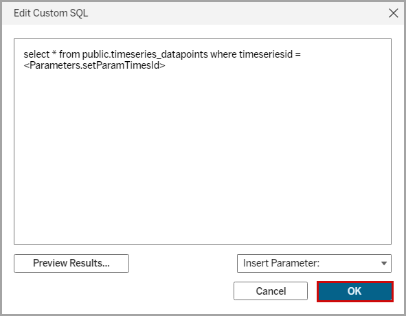 - In theEdit Custom SQLdialog box, clickOK.Edit Custom SQL Dialog
