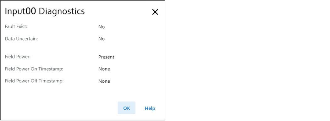 To view the Input00 diagnostics, select Diagnostics in the Input view.