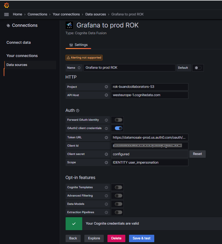 - Refer to the following image for a valid configuration.Grafana Valid Configuration