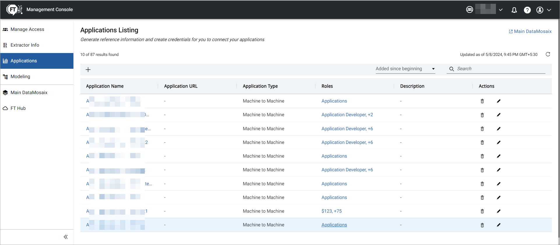 - On the Management Console, select theApplicationstab.TheApplications Listingpage is displayed.Applications Listing