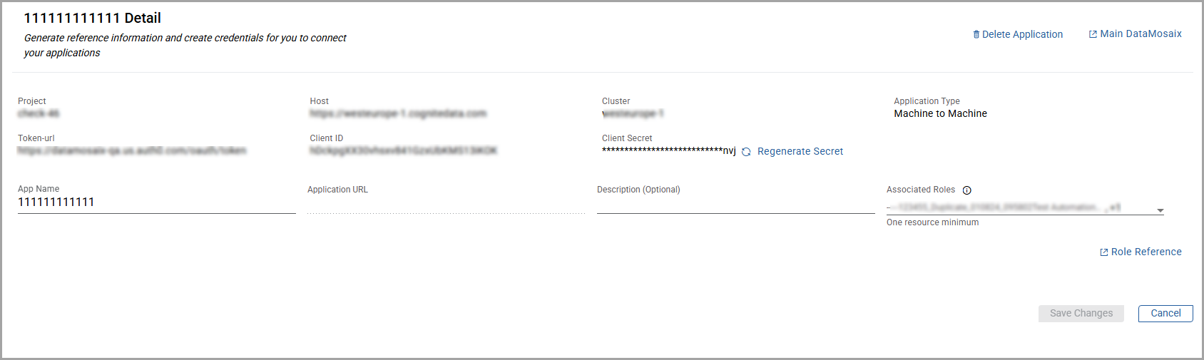 You can edit the application information such as Application Name, Application URL, and Description. In case of Machine to Machine application, you can also edit Associated Roles. - Edit the information in the required fields.