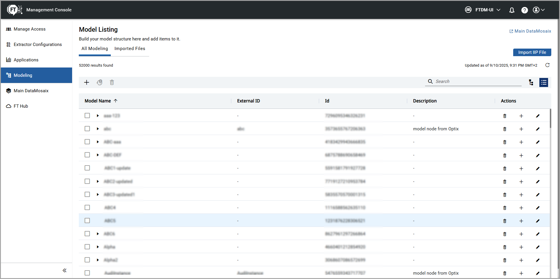 .- On the Management console, select theModelingtab.By default,All Modelingtab is selected and theModel Listingpage is displayed.Model Listing