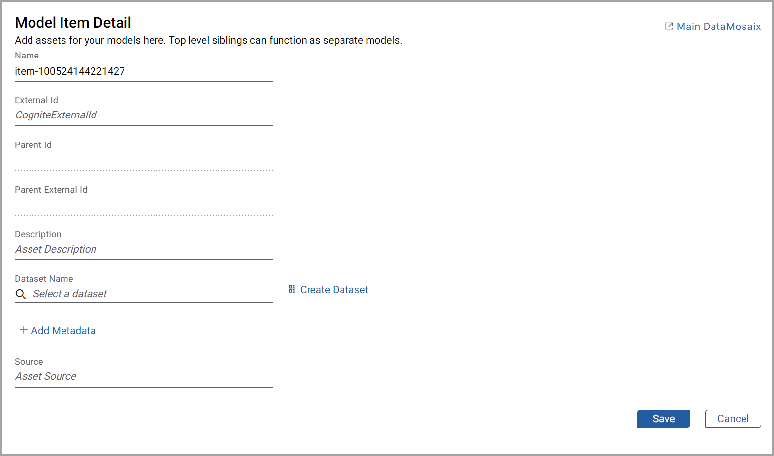 - Click the Add [+] icon.TheModel Item Detailpage is displayed.Model Item Detail