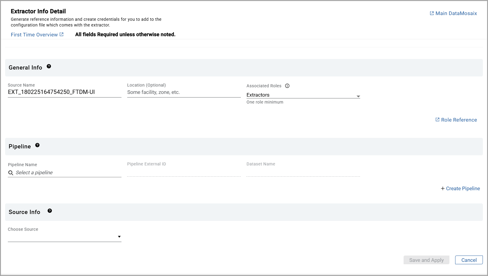 - ClickAdd.The Pipeline and Dataset information is displayed on theExtractor Info Detailpage.Create Dataset