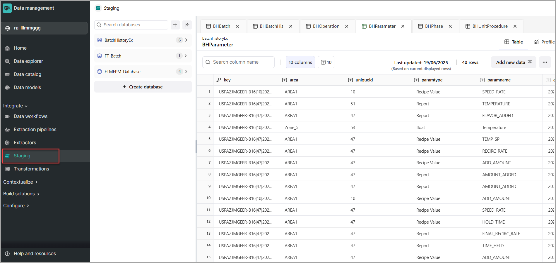- SelectIntegrate>Stagingto verify if the data is inserted into the table.Cognite Data Fusion - Staging