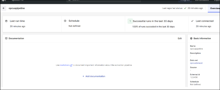 - Once the extractor has been configured and executed successfully, navigate to your project in CDF and open the pipeline by selectingIntegrate>Extraction Pipelines.