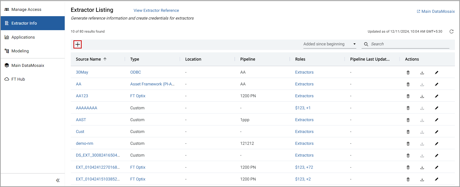 - Click the [+] icon from the top-left corner of the page.Extractor Info Tab