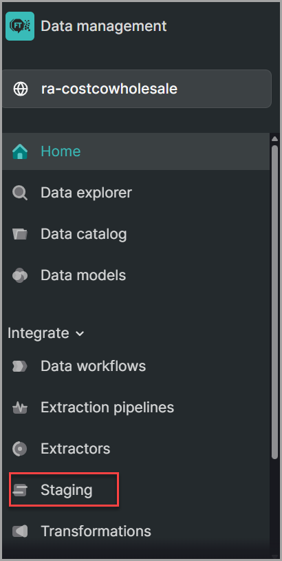 - Navigate to your project in CDF by clickingMain DataMosaixand selectIntegrate>Staging.Cognite Data Fusion - Staging
