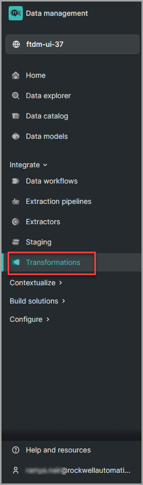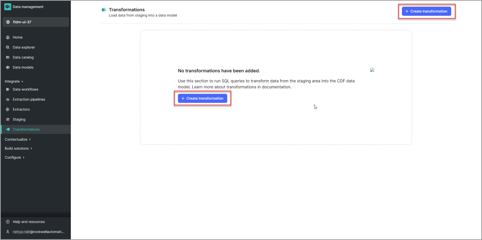 - Navigate to your project in CDF and selectIntegrate>Transformations.Select Transform Data