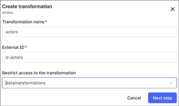After you have uploaded the data to the CDF project, you need to create a transformation in CDF.