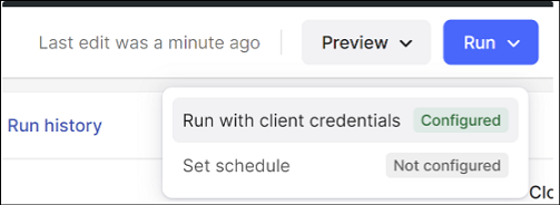 - In the Mapping editor, clickRunand selectRun with client credentials.You should be able to view the labelconfigured, when you selectRun with client credentials.Select Run with Client Credentials