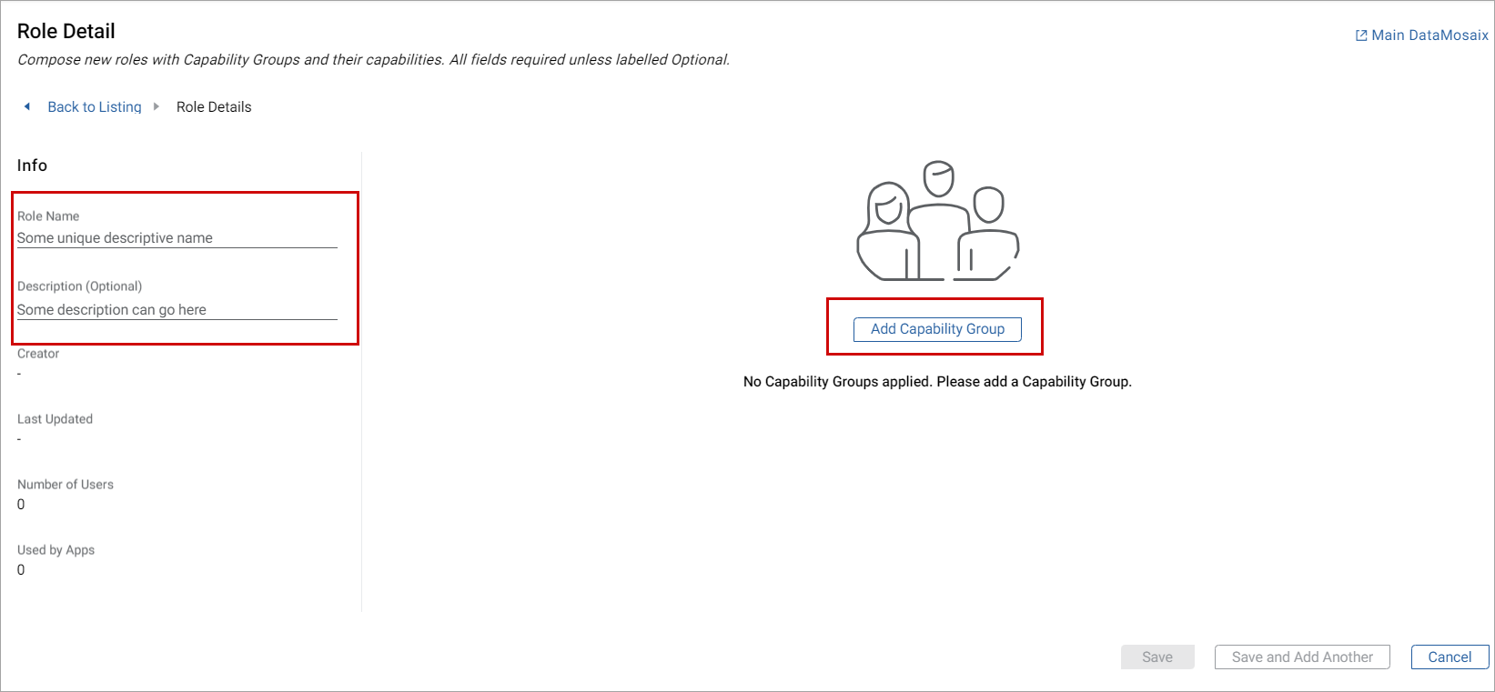 - NOTE:You need to save the changes on theRole Detailpage in order to add the capability group successfully to the selected role.
