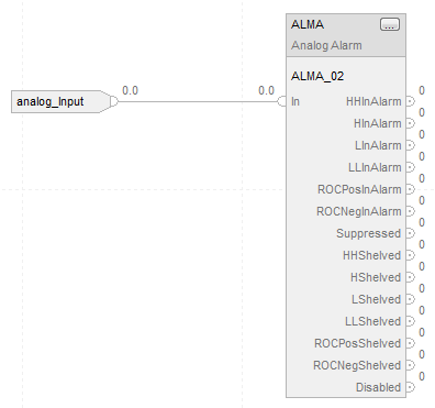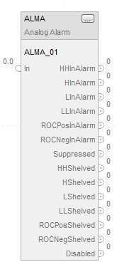 In | REAL | The alarm input value, which is compared with alarm limits to detect the alarm condition. Default = 0.0. Ladder Diagram: Copied from instruction operand. Structured Text: Copied from instruction operand. |