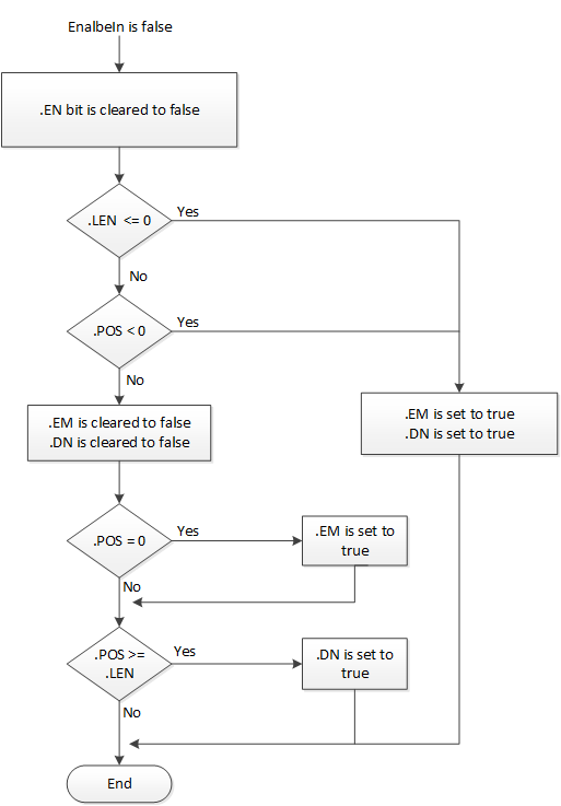 .EM | BOOL | The empty bit indicates the LIFO is empty. If .LEN < or = to 0 or .POS < 0, both the .EM bit and .DN bit are set. |