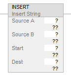 Start | SINT DINT INT | Immediate tag | Position in Source A to add the characters | Enter a number between 1 and the DATA size of the Source. |