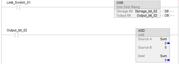 Each time Limit_Switch_01 transitions from false to true the OSR will set Output_bit_02 to