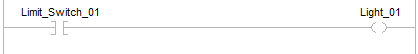 When switch is true, the OTE instruction sets Light_01 to true. When switch is false, the