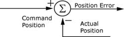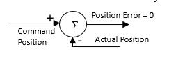The figure below shows the relationship between Actual Position, Command Position, and Position Error for an axis with an active servo loop. Actual Position is the current position of the axis as measured by the feedback device, for example an encoder. Position error is the difference between the Command and Actual Positions of the servo loop, and is used to drive the motor to make the actual position equal to the command position.