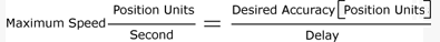 Use the formula given above to calculate the maximum registration position error for the expected axis speed. Alternatively, you can calculate the maximum axis speed for a specified registration accuracy by re-arranging this formula: