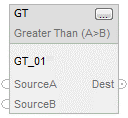 EnableIn is true | Numeric compare: Set EnableOut to EnableIn If SourceA and SourceB are not NANs and SourceA is greater than SourceB. Set Dest to true else Clear Dest to false. |