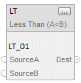 Rung-condition-in is true | Numeric compare: If Source A and Source B are not NANs and Source A is less than Source B. Set Rung-condition-out to true else Clear Rung-condition-out to false. |