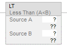 EnableIn is true | Numeric compare: If SourceA and SourceB are not NANs and SourceA is less than SourceB. Set Dest to true else Clear Dest to false. |