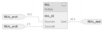 Source B | SINT INT DINT REAL | SINT INT DINT LINT USINT UINT UDINT ULINT REAL LREAL | immediate tag | Value of the multiplier. |