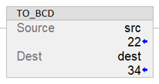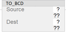 Source | SINT INT DINT | SINT INT DINT LINT USINT UINT UDINT ULINT | Immediate tag | Value to convert to BCD 0 ![]() ![]() |