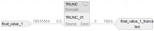 Rung-condition-in is true | Set Rung-condition-out to Rung-condition-in. Dest = Truncated value of the Source. |