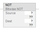 Source (top) | SINT USINT INT UINT DINT UDINT LINT ULINT REAL LREAL | Value to NOT. |