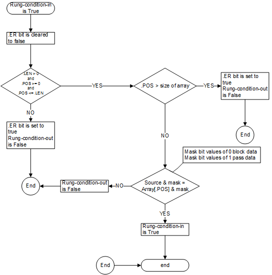 Mask | SINT INT DINT | tag immediate | This operand is used to determine which bits to block (0) or pass (1) when applied to the Source and the Array element referenced by .POS. INT and SINT types are zero extended to the size of a DINT type. |